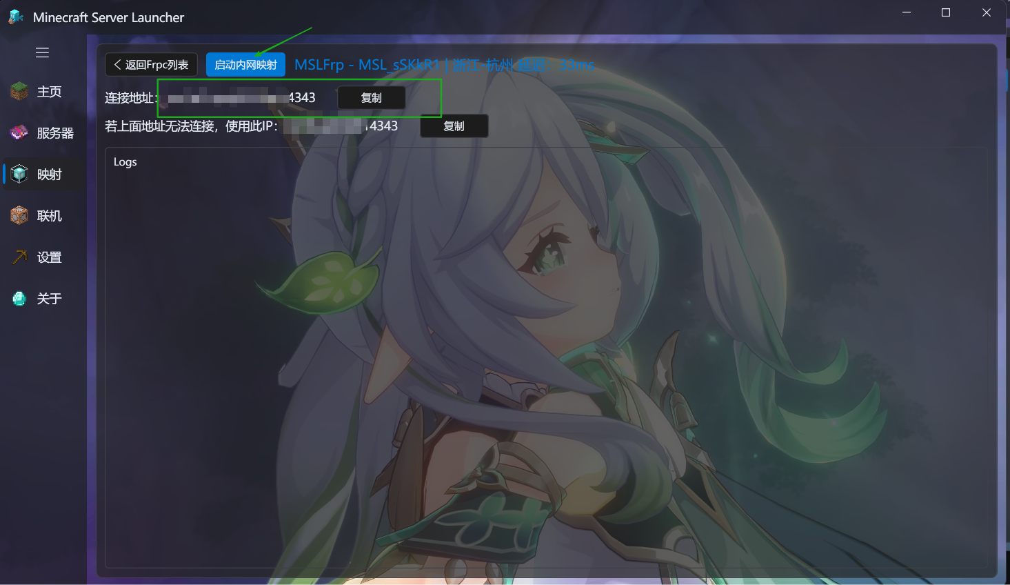 启动隧道,成功后即可使用连接地址进入您的MC服务器。