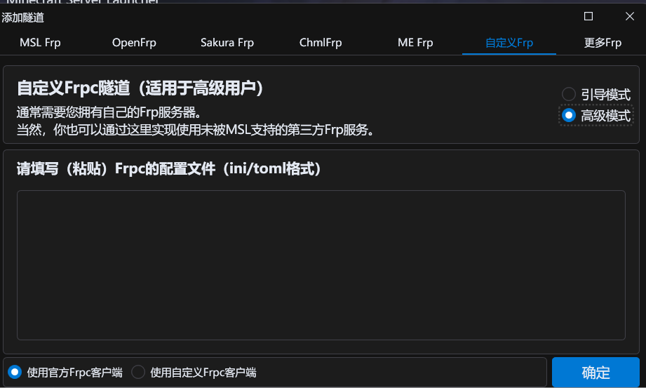 目前支持的第三方服务商:OpenFrp,Sakura Frp,ChmlFrp,ME Frp