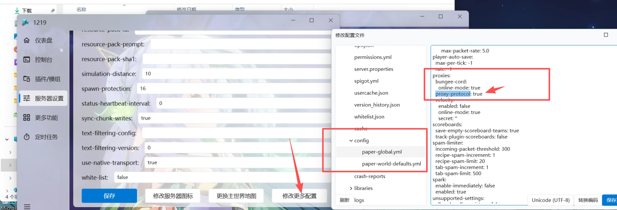 接下来需要配置服务端的支持(这里以paper端为例子)。