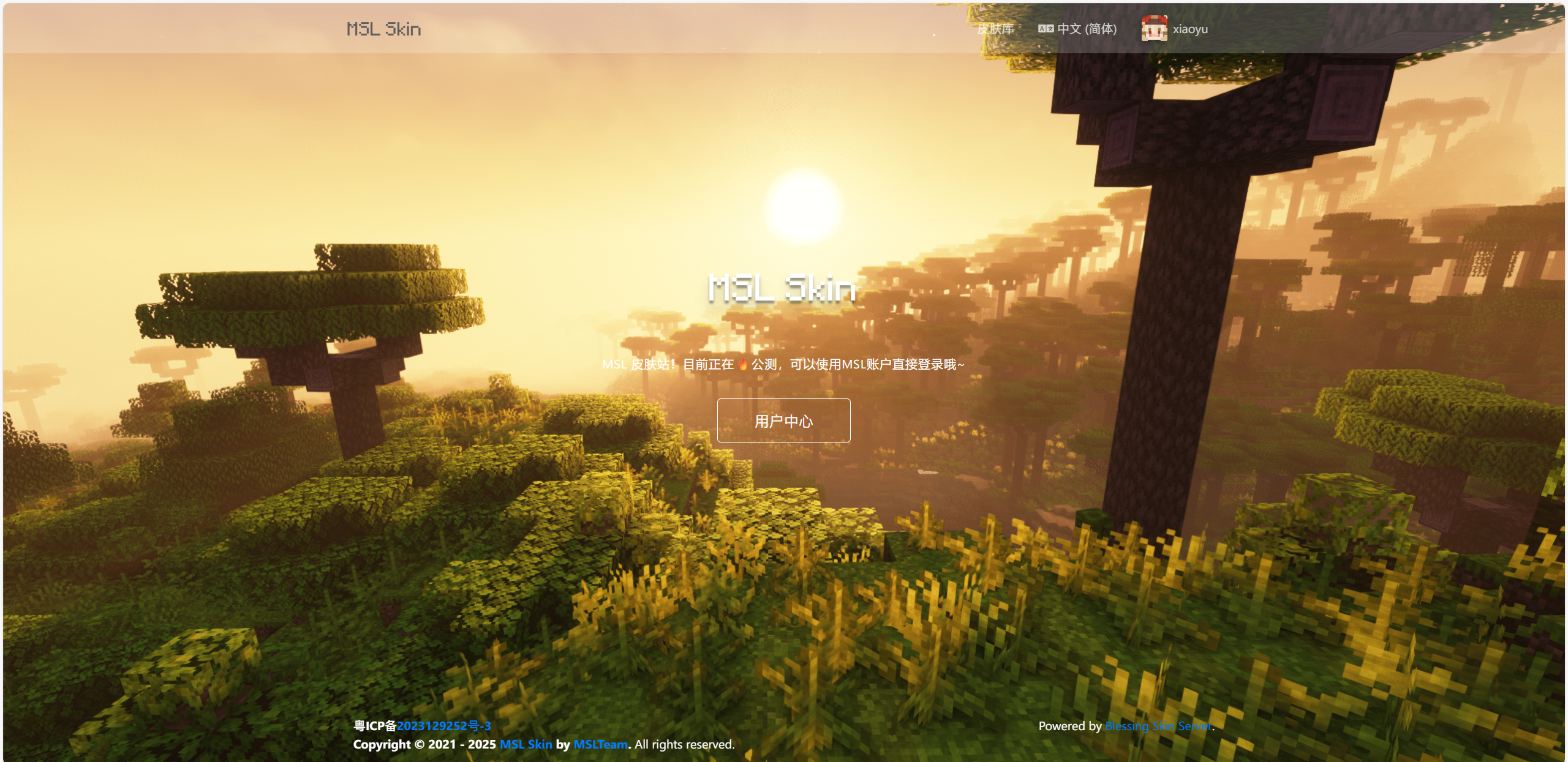 MSL Skin (MSL皮肤站) 是基于 Blessing Skin 的一个MC皮肤站点,并且支持对接外置登录 Yggdrasil API 。